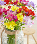 De Freesia is een prachtige, geurende bloem. De lengte kan variëren van 30 tot 60 cm. Freesia's hebben een hoge lichtbehoefte en doen het op z'n best in de volle zon. Ze bloeien van juni tot en met augustus en hebben een bloeiperiode van ongeveer zes weken. De planttijd is half mei, wanneer er geen kans meer is op nachtvorst. De Freesia is namelijk niet winterhard. Je kunt ze dan ook het beste na de bloei in de herfst uit de grond halen. Freesia's worden vaak gebruikt als snijbloem en worden ook toegepast in bruidsboeketten. In de tuin houden ze vooral van een goed doorlatende en vochtige grond (niet drassig), vooral tijdens de bloei. Laat na de bloei het groen doorgroeien zodat de bol daar nog energie van kan krijgen. Dan kunnen ze je weer een prachtige bloem geven in het volgende seizoen!