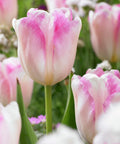 De triumph tulp Infiniti is een roze tulp. De bloembladen kleuren lichtroze, met een geleidelijke overgang naar een iets donkerder roze randje aan de bovenkant van de bloembladen. Deze tulp heeft een prachtige klassieke vorm.